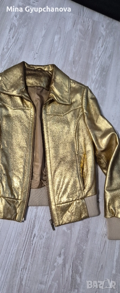 златно яке естествена кожа , снимка 1 - Якета - 52658522 златно яке естествена кожа , снимка 2 - Якета - 52658522 1/2