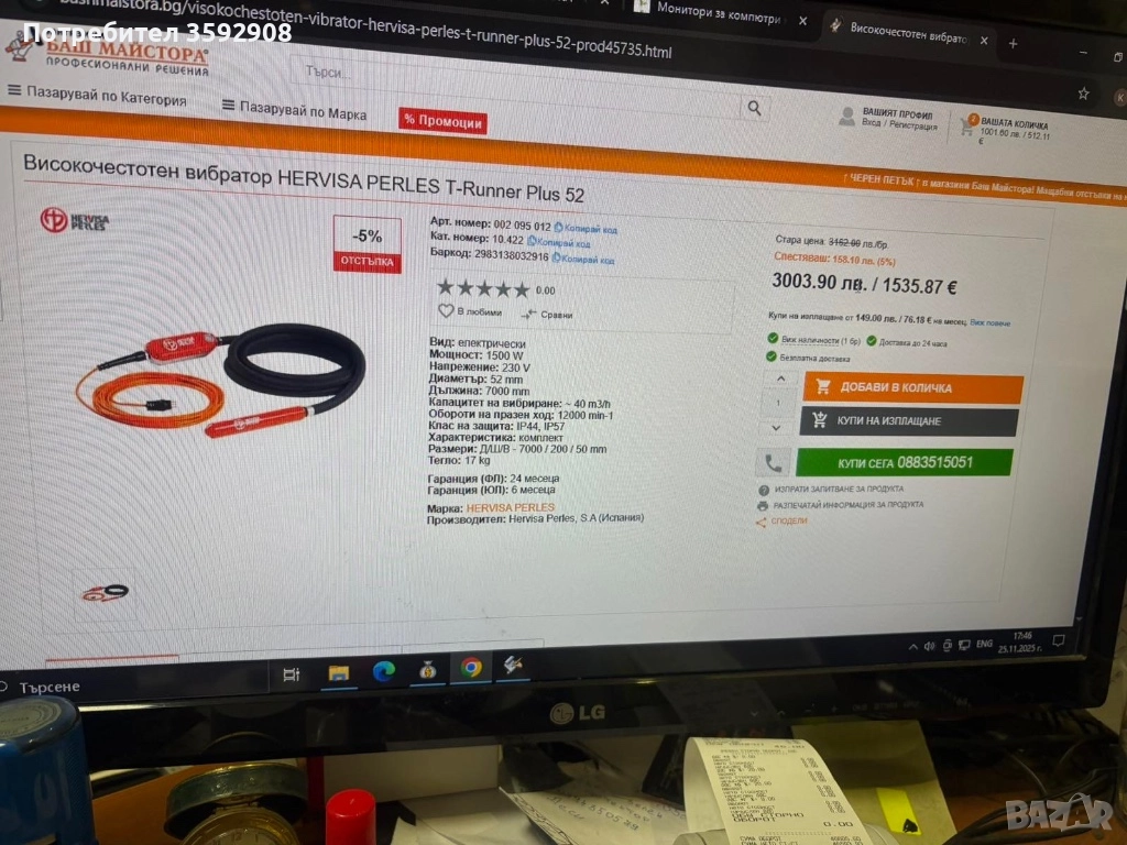 Високочестотен вибратор за бетон HERVISA PERLES T RUNNER → Обява 52658623