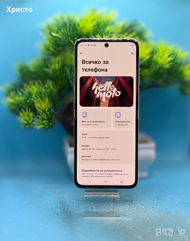 Телефонът работи отлично със всички оператори и функционира безупречно във всяко отношение. Никога не е бил на сервиз и по него не е правено нищо — напълно оригинален и автентичен. Има дребни козметични следи от употреба, основно по сгъвката от нормалното разгъване и сгъване, което е типично за този модел, но не влияе по никакъв начин на работата, дисплея или механиката. Всички функции — камера, екран, софтуер, свързаност и батерия — работят гладко и надеждно.