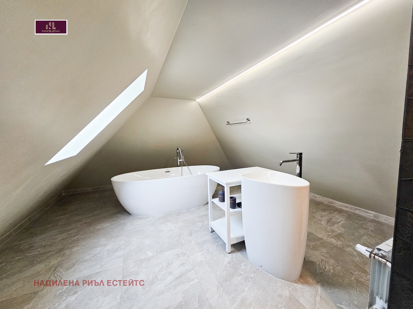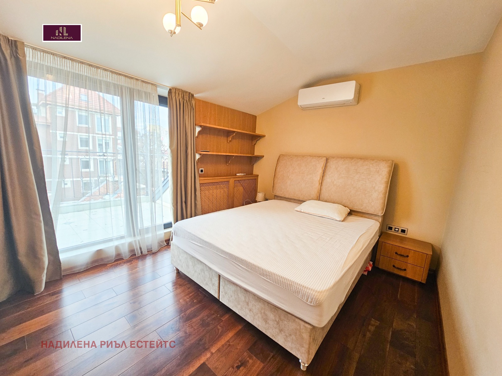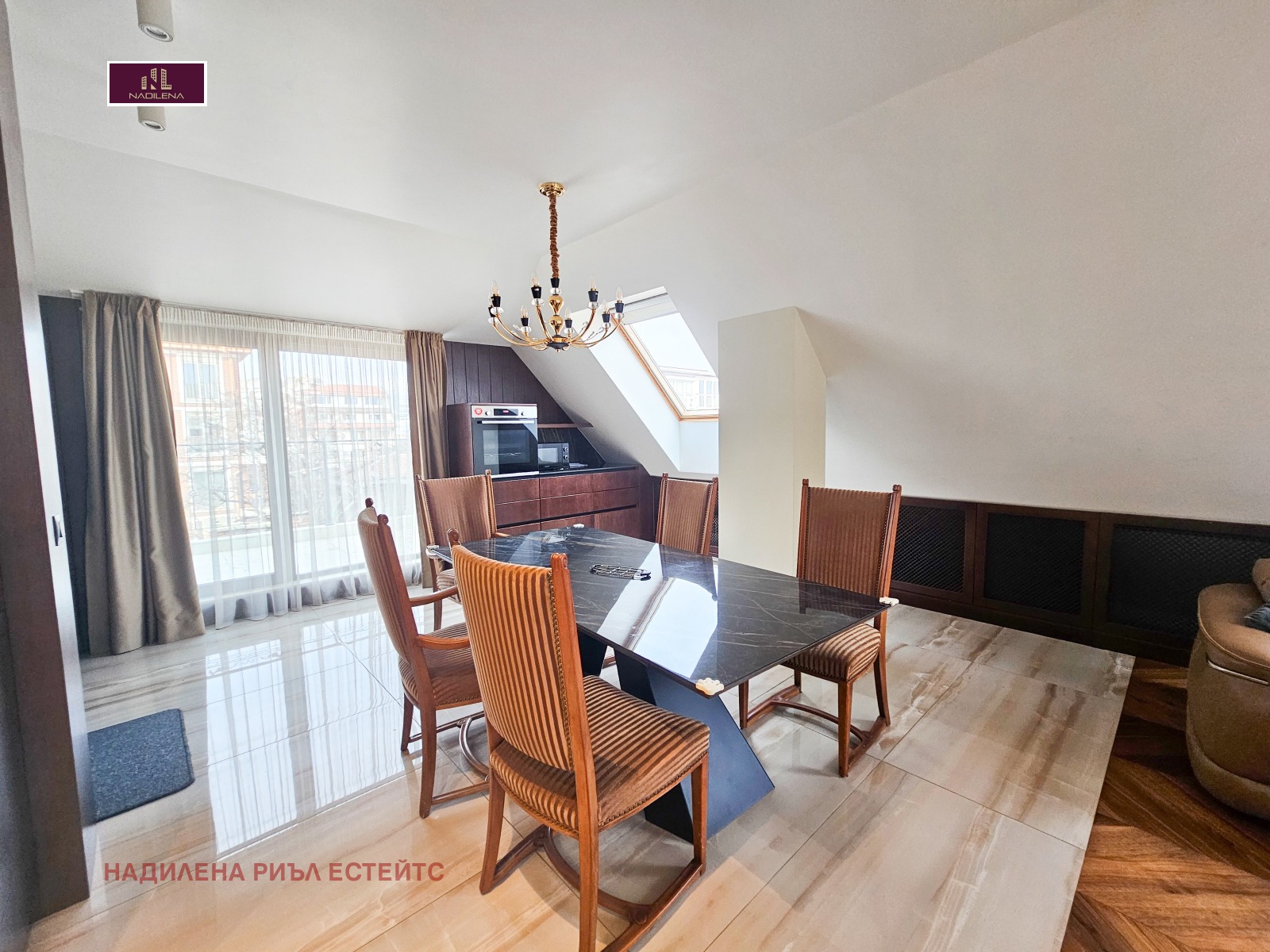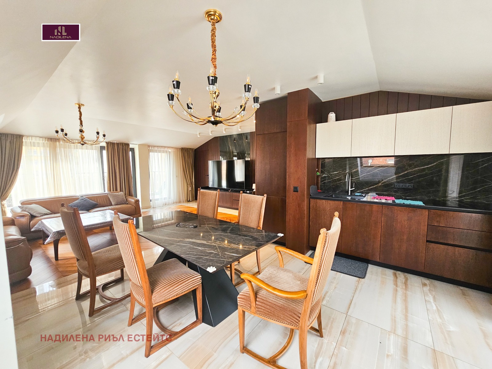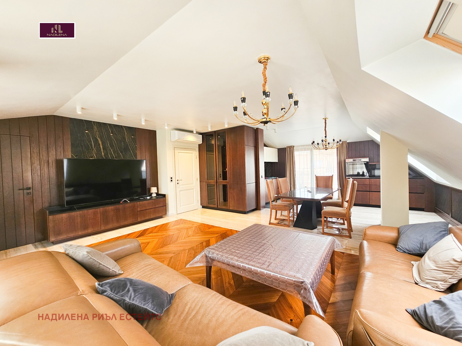 ДО ПЛ. РУСКИ ПАМЕТНИК! НОВА МОДЕРНА СГРАДА! С ГАРАЖ И ПАРКОМЯСТО! Надилена риъл естейтс предлага под наем изискан апартамент тип мезонет, с площ от 230кв.м., ет.5/от 6, с асансьор, отопление-ТЕЦ. Огромно предимство е отличната локация-улица 'Владайска', в близост до парк Възраждане, пл. Македония, МОЛ СОФИЯ, големи хипермаркети, заведения, държавни учреждения, банки, училища и детски градини. Сградата е нова строителство от 2019год., с контролиран достъп, видеонаблюдение, СОТ. Апартаментът е направен по индивидуален дизайнерски проект, използвани са качествени материали, мебелите са стилни и изчистени, осигуряващи пълен комфорт на живеене. Площта е разпределена на 2 нива и включва на 1-во ниво-антре с вграден гардероб, спалня с излаз на тераса, втора спалня със самостоятелна баня с тоалетна излаз на тераса, мокро с пералня и отделно сушилня, просторна дневна с трапезария, вградена кухня с висок клас електроуреди, излаз на два балкона, 2-ра баня с тоалетна, килер. На второто ниво самостоятелна спалня с гардероб и бюро, голяма баня с тоалетна. Настилката в коридора е гранитогрес, дневната и стаите са на скъп естествен паркет. Във всяко помещение за охлаждане и в преходните сезони за отопление са поставени климатици. Изложение-изток/запад/север. Навсякъде има поставени и автоматични ролетни щори. От всички тераси се открояват панорамни гледки. Към апартамента има гараж и паркомясто ВКЛЮЧЕНИ В ЦЕНАТА! БЕЗ ДОМАШНИ ЛЮБИМЦИ. За допълнителна информация и огледи се обръщайте към Надя Антова-088/9999 413, 0888/788 420, Васил-0899/18 35 80, Елена-0898/60 55 33