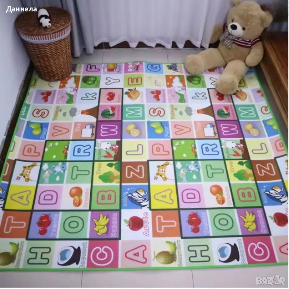 Двулицево детско килимче: Размери: 120 см х 180 см Дебелина: 0.5 см Материал: Полиуретанова пяна / EVA (в зависимост от модела) Цвят и мотиви: многоцветни, варират според наличностите Тегло: 1–2 кг Форма: Правоъгълна Непромокаемо и неплъзгащо покритие Материал на повърхността: Полиетилен Водоустойчиво, лесно за почистване Леко, сгъваемо, преносимо Подходящо за закрито и открито Осигурява топлоизолация и мекота Магическа водна подложка Aqua: Материал: Висококачествен найлон с EVA елементи Размери: 60×80 см и 80×100 см Подходяща възраст: 2+ години Тип употреба: многократна Време за изсъхване: около 10 минути Без мастило, без бои – използва се само вода Образователни мотиви: динозаври, коледа, космос, животни и др. Самопочистваща при изсъхване Безопасна и нетоксична Магическа водна подложка Aqua размери:: 60×80см: 36.00лв. Магическа водна подложка Aqua размери:: 80×100см: 41.00лв.