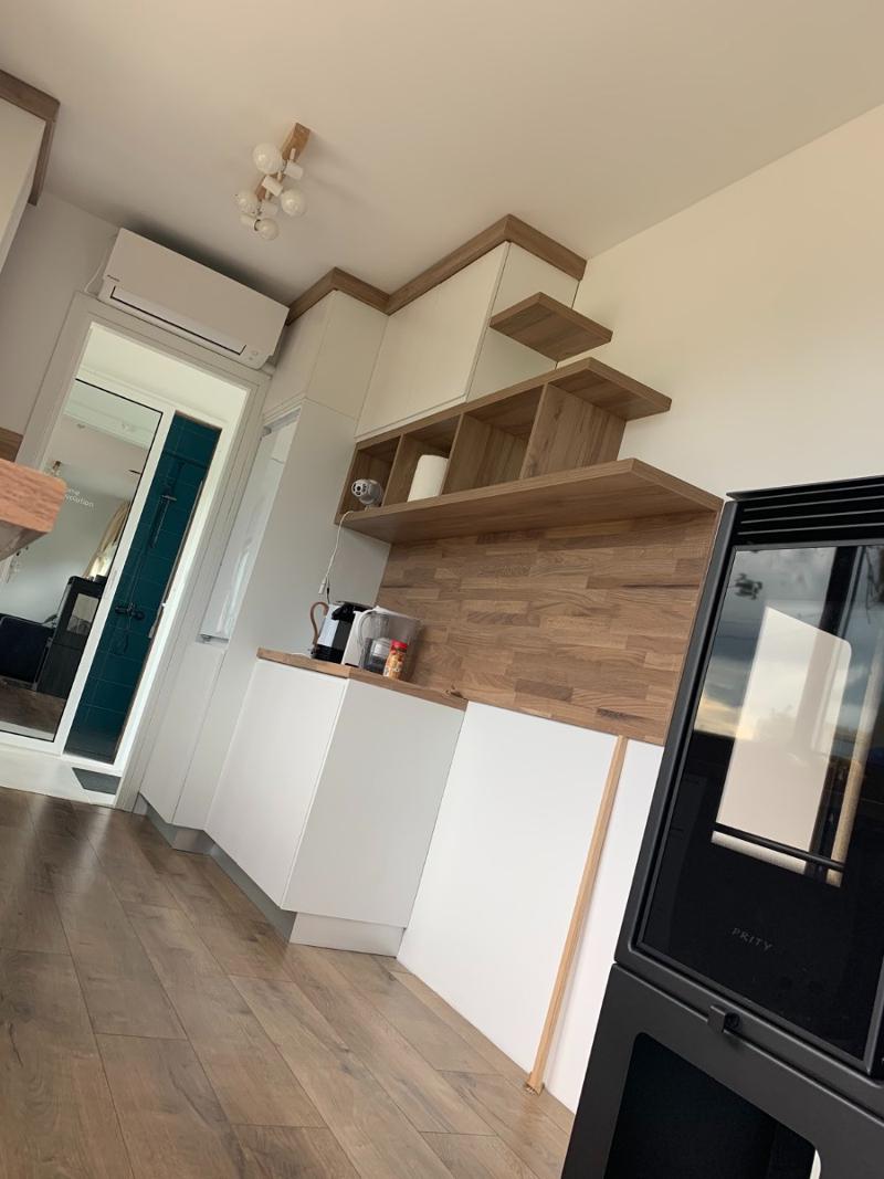 соларни панели, камина, и мн.др.За подобен тип имоти не се изисква Разрешение за строеж в повечето случаи. Ако се изискват разрешителни режими те са много по-облекчени. Ако е поставен върху платформа с гуми не е необходимо разрешително. Има готовност за връзка на солари, пречиствателна станция и т.н. Може да се достави до всяка точка, стига да има тир достъп. Може да се посети и да се прекара няколко дни в демонстрационният дом. В цената е включена техника /климатик, кухтенско оборудване Вош и Горение, бойлер, тв и др./, обзавеждане, врати. Напълно готов за обитаване.