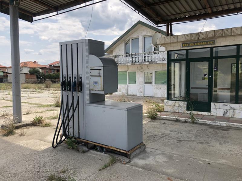 Бензиностанция, голям бетониран паркинг подходящ за тирове, офис, тоалетна, склад, 2 броя спални, видеонаблюдение, интернет, градина, овошки, сервизен канал, осветление, ток, вода, канализация, разрешителни за работа като бензиностанция. Разполага с три цистерни за различни горива, всеки по 25 куб.м.