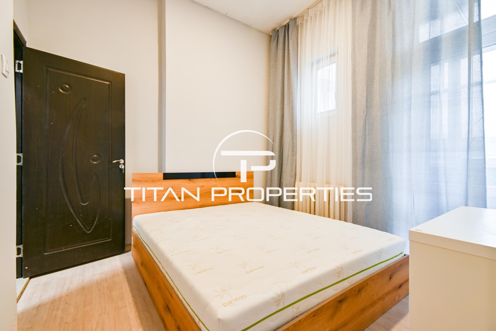 Титан Пропъртис - офис Младост с радост предлага на Вашето внимание тристаен апартамент под наем в Център-НДК, София. Жилището с площ 110 кв.м е разположено на първи етаж в тухлена пететажна сграда. Изложението е южно. Разпределението включва две спални, хол и отделна кухня, както и баня с тоалетна. Апартаментът е обзаведен, отоплява се на ТЕЦ и разполага с климатик за вашия комфорт.