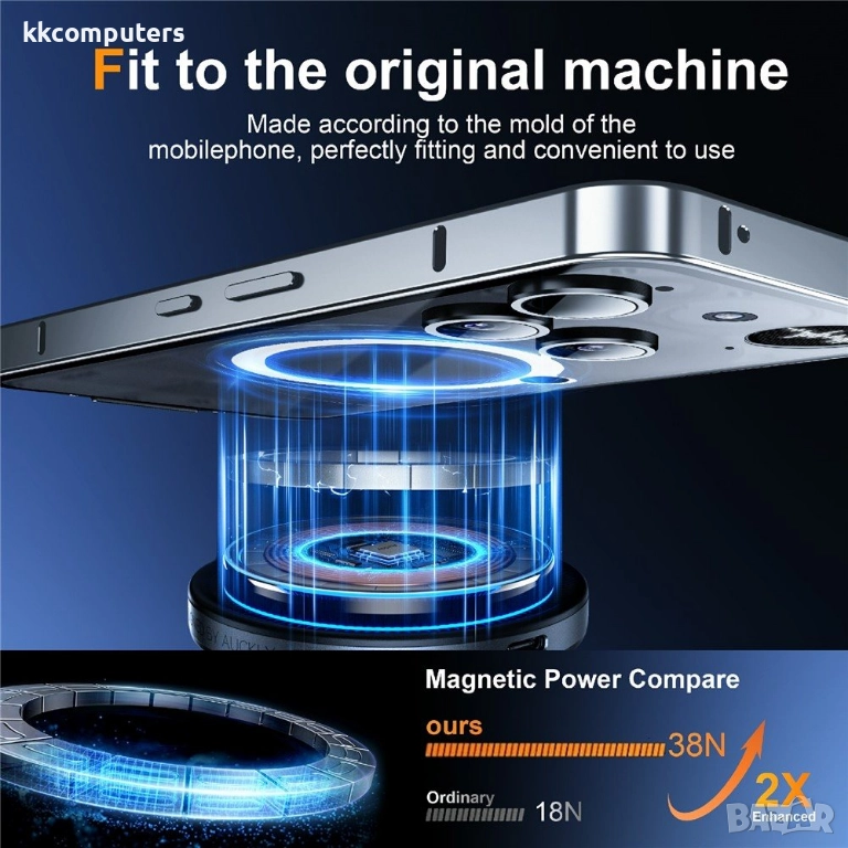 Магнитна универсалност: Вградени магнити (Magsafe съвместими) за лесно закачане на магнитни стойки за кола и безжични заряди.