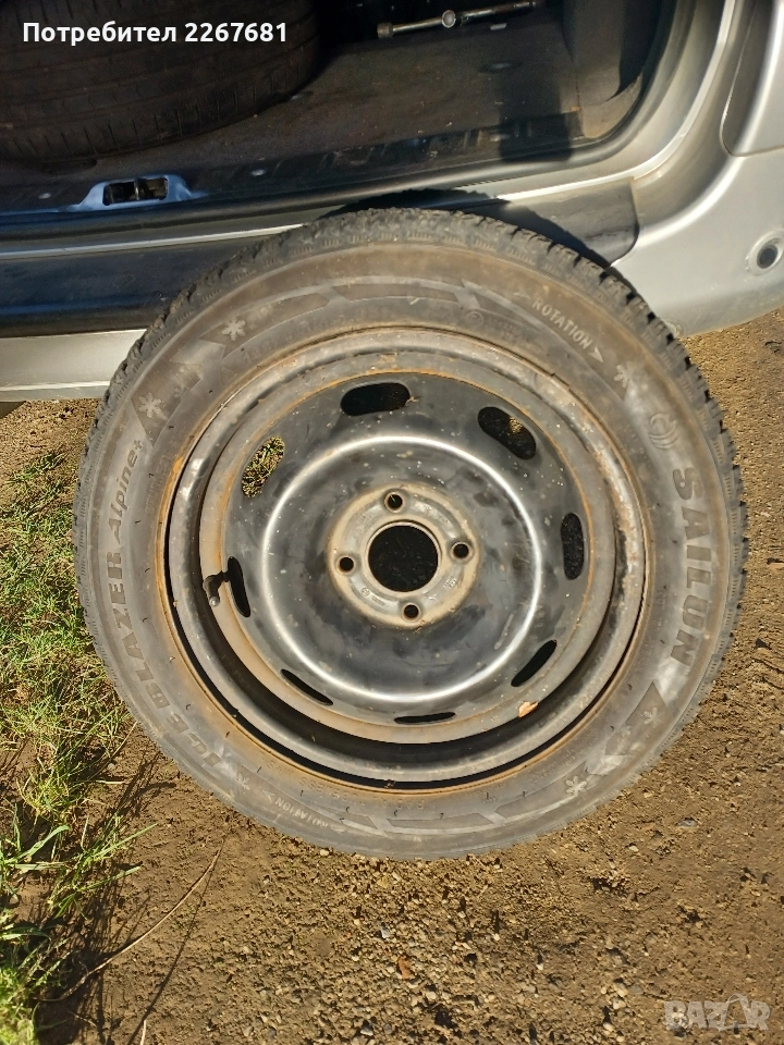 Четири зимни гуми 195/55 R15 на цена 100 лева. Ако са с джантите- 350 лева. Джантите са с 4 отвора.