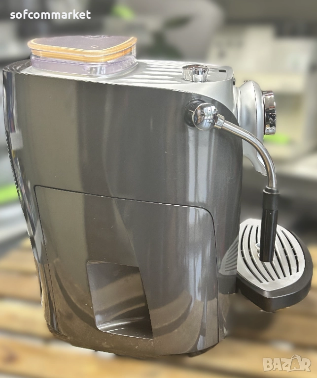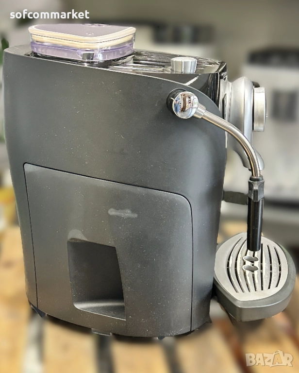 - Керамична кафемелачка: Машината е оборудвана с керамични ножове, които осигуряват качествено и тихо смилане, като запазват аромата на кафето.