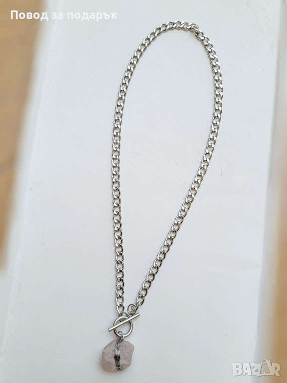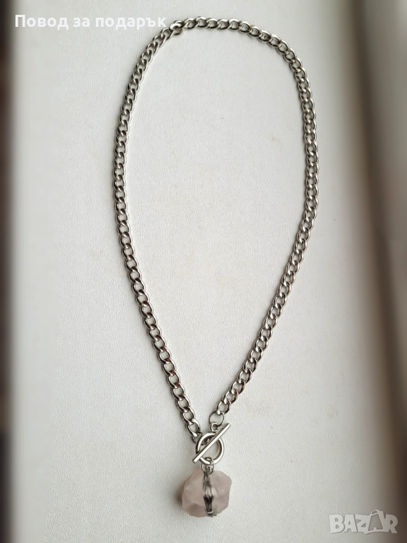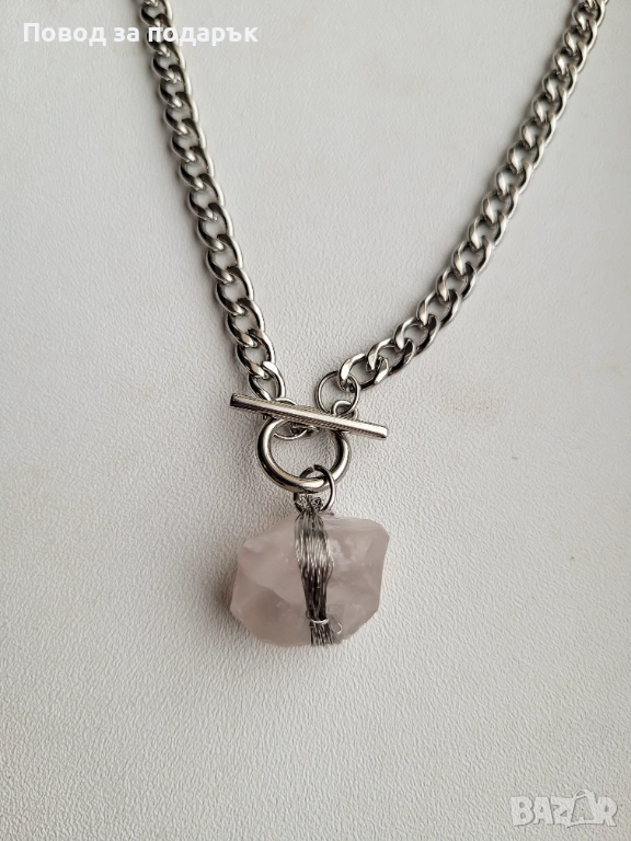 Колие от неръждаема стомана и естествен кварц → Обява 52660750