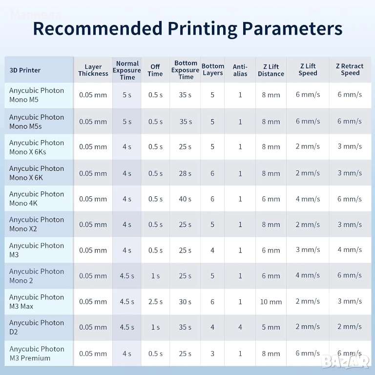 Съвместима с широка лента 365-405nm, смолата Anycubic е подходяща за всички 3D LCD/DLP принтери на пазара.