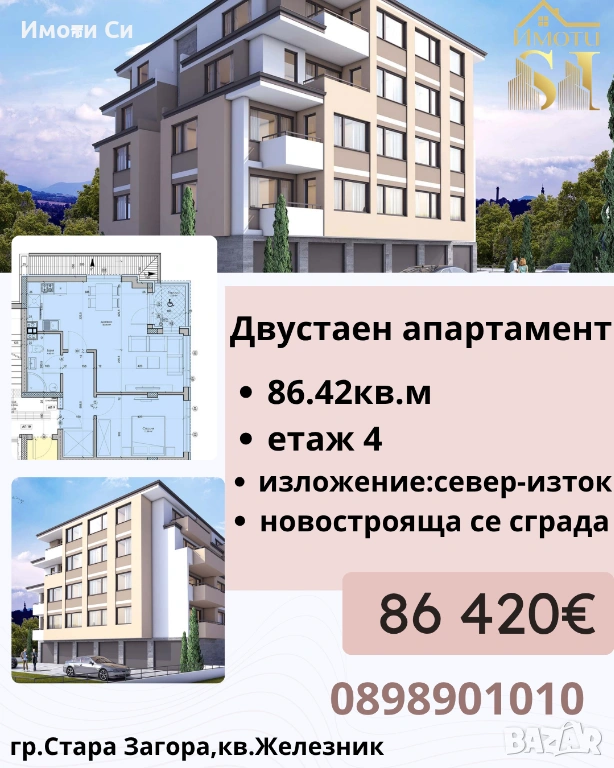 "Имоти Си" продават двустаен апартамент,находящ се в град Стара Загора, кв. Железник
