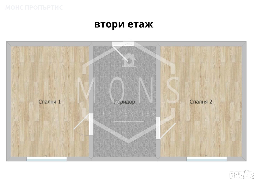 -Втори етаж : коридор и две спални.