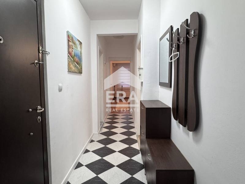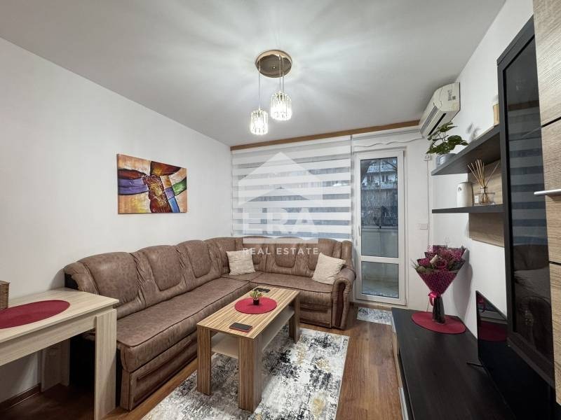 Апартаментът е с модерен дизайн, напълно обзаведен и напълно оборудвана кухненска част. Готов за нанасяне. Подовата настилка е ламиниран паркет в стаите и санитарен фаянс и теракот в банята. Отопление/охлаждане с два климатика, осигуряващи оптимален микроклимат през всички сезони. Паркирането в района е свободно. Отдава се дългосрочно.