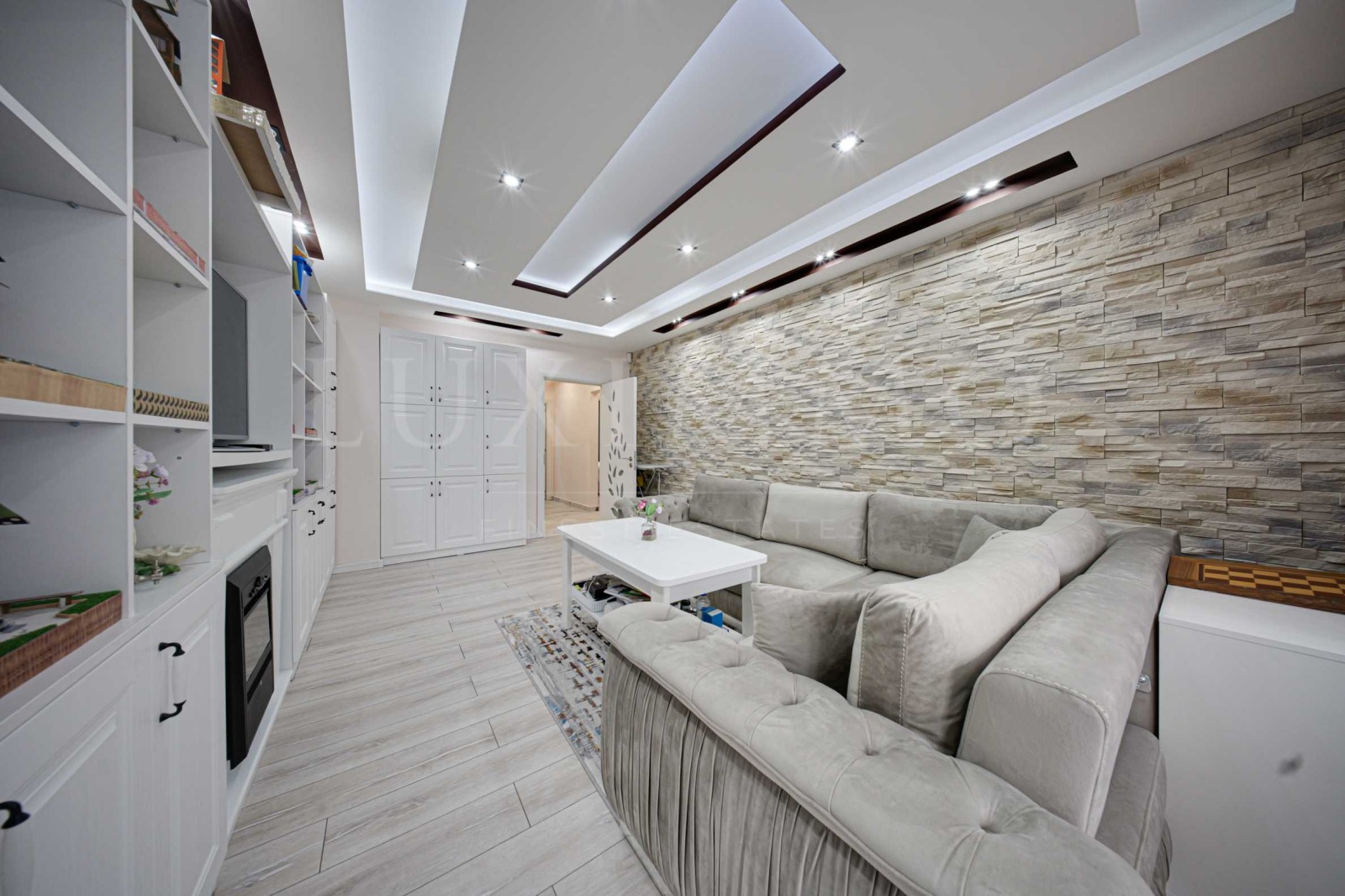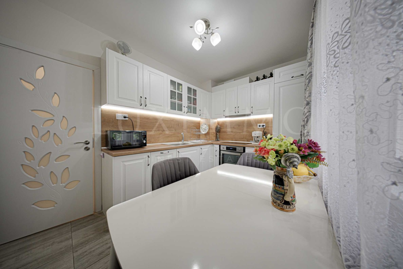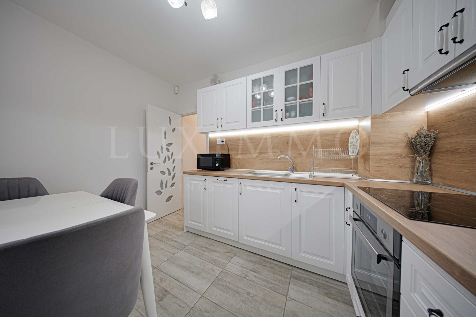 Апартаментът е основно ремонтиран с внимание към всеки детайл и е готов за нанасяне. Имотът е светъл, топъл и тих, обграден от много зеленина, с изложение юг/север.