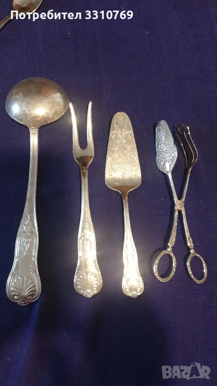 Посребрени десертни чинии и прибори за хранене и сервиране. → Обява 52661123