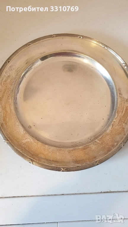 Снимка13:Чиния1-посребрени десертни 10 броя,диаме- търД=18см.Ц=100лв. Снимка14:Чиния2- плато ,бронз ,посребреновъншния ръб с позлата, Д=27см.,цена Ц=25лв. Снимка15:,посребрен