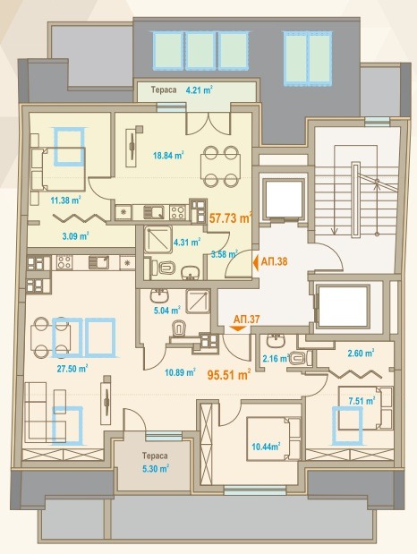 Една от възможностите, които Ви предлагаме, е на двустаен апартамент с площ от 79,77 кв.м.