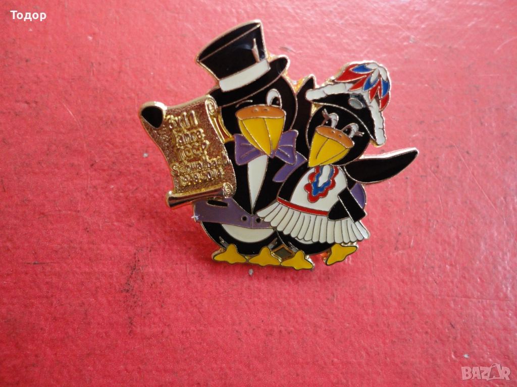 Голям бронзов знак значка с емайл Pinguine 2 → Обява 52661572