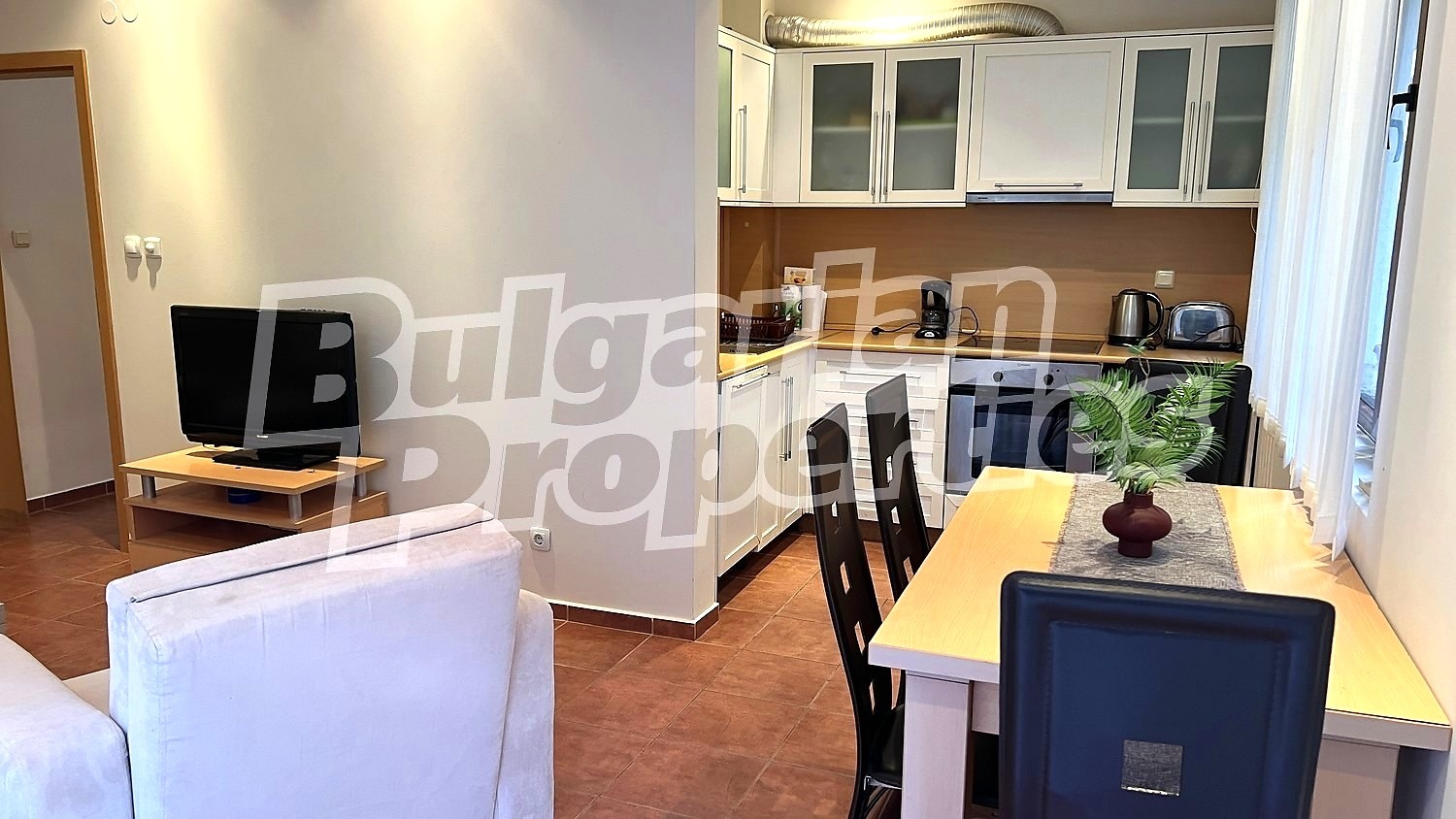 Апартаментът е с площ от 58 кв. м., отлично поддържан, светъл и напълно обзаведен. Разпределението включва уютна дневна зона с кухненски кът, комфортна спалня и баня, като цялото жилище е климатизирано с инверторни климатици. Интериорът е внимателно подбран, а наличното обзавеждане и оборудване позволяват имотът да бъде нает и използван веднага, без необходимост от допълнителни инвестиции.