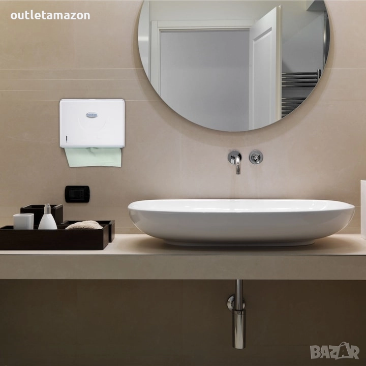 Диспенсър за хартиени кърпи, капацитет 200, бял, 20,5 x 27,5 x 10 cm. Може да се пълни с кърпи за еднократна употреба размер H2