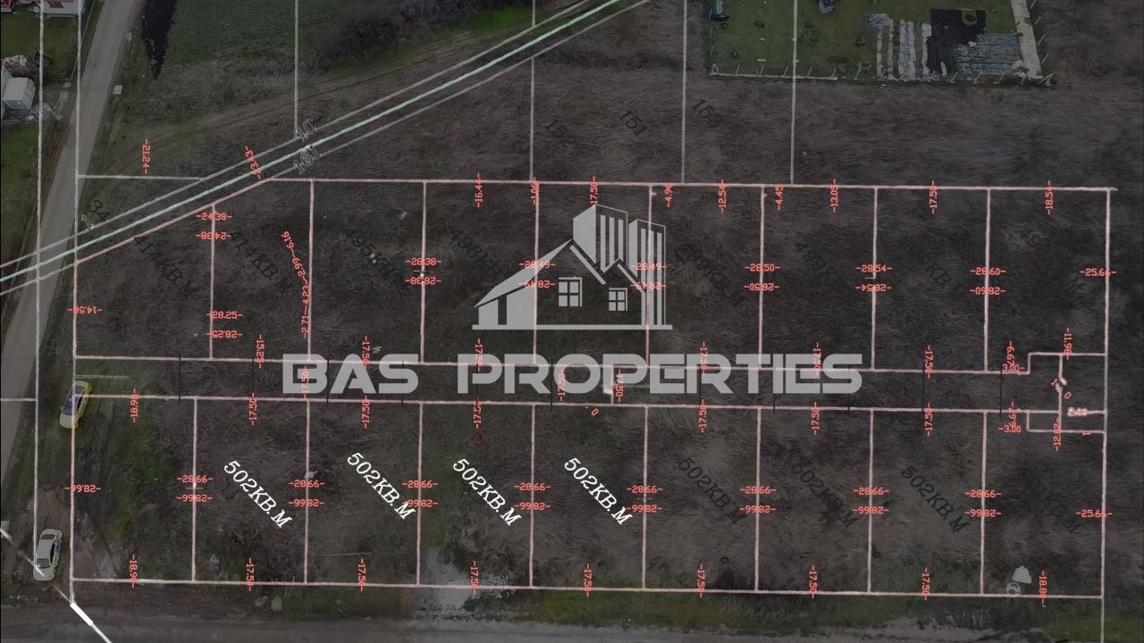 Парцелите са четири на брой, идентични по площ 502 кв.м., разположени един до друг.