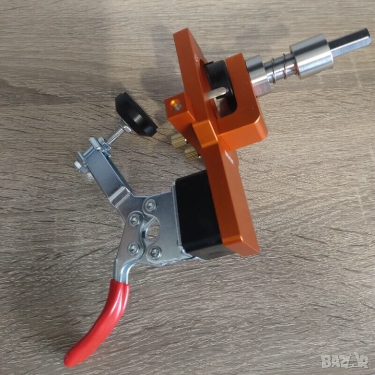 · Пластмасов шаблон (виж последната снимка) - подходящ за фиксиране точното разстоянието на отвора и мястото за винтовете на страничната плоскост.