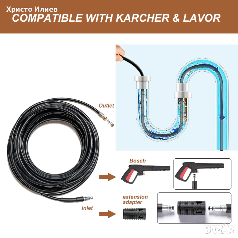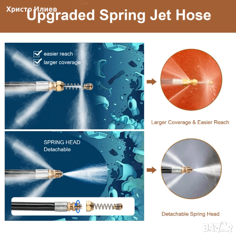 Комплектът е перфектно решение за редовна поддръжка на дома, предлагайки ефикасна и икономична алтернатива на по-сложните ВиК методи. Идеален за външна употреба, поддържайки улуци, канализация и градински тръби свободни.
