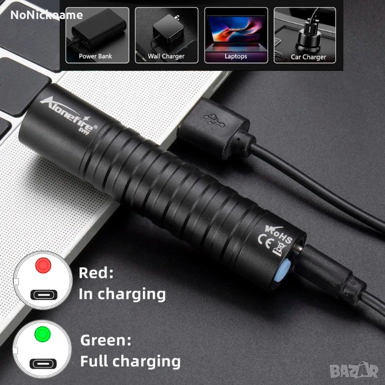Alonefire 365nm UV Фенер акумулаторна флуоресцентна лампа за откриване на петна, течове масло, пари
