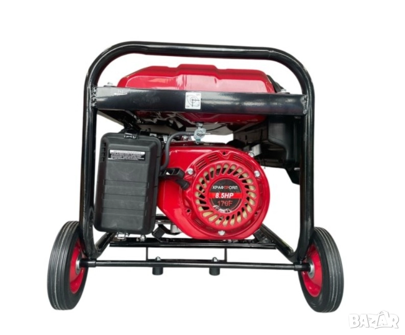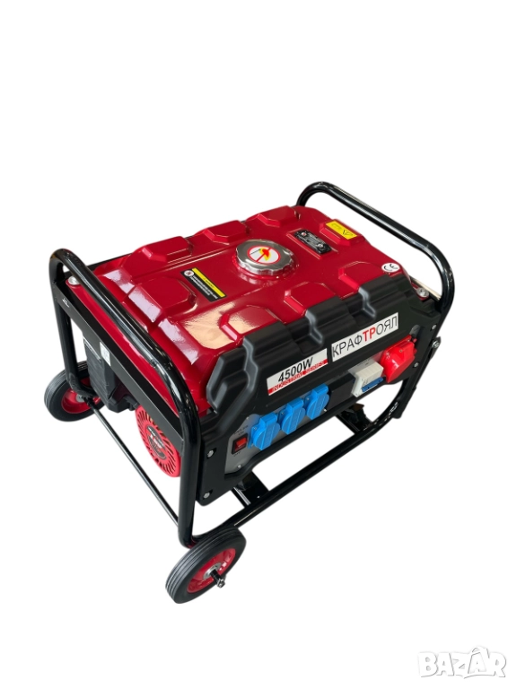 Агрегат за Ток Четиритактов с Колела и Дръжки 4.5kW Генератор Монофазен Трифазен KRAFTROYAL 220V с дисплей волтметър,