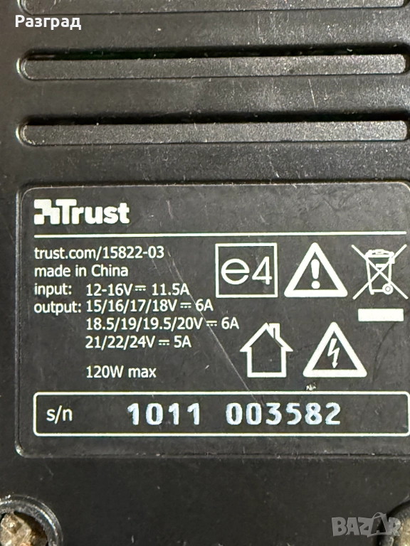 trust power adapter от 12V на 15V до 24V/6A/120W → Обява 52663023