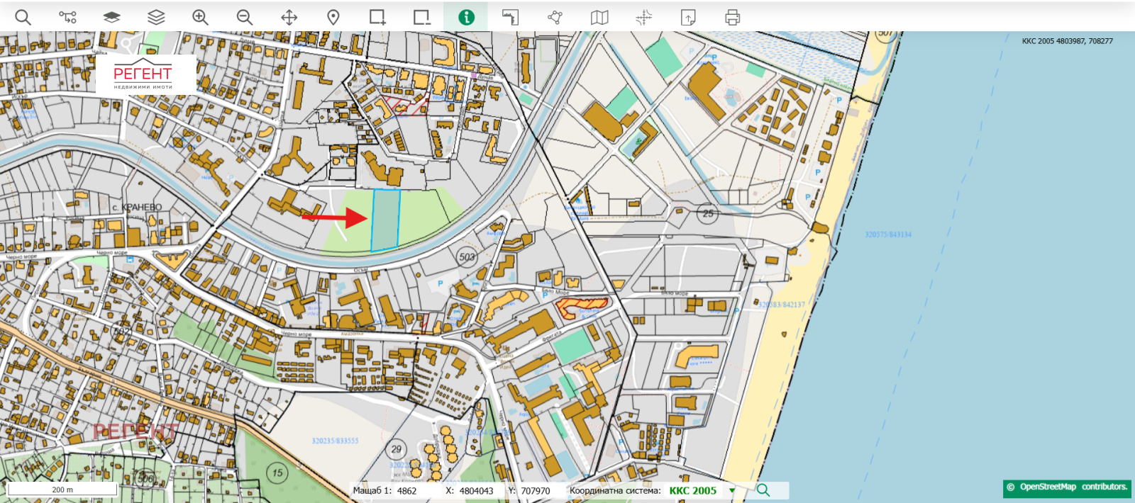 С площ от 5300.00 кв.м. и правилна форма, имота е изключително подходящ за инвестиция и изграждане на хотелски комплекс.
