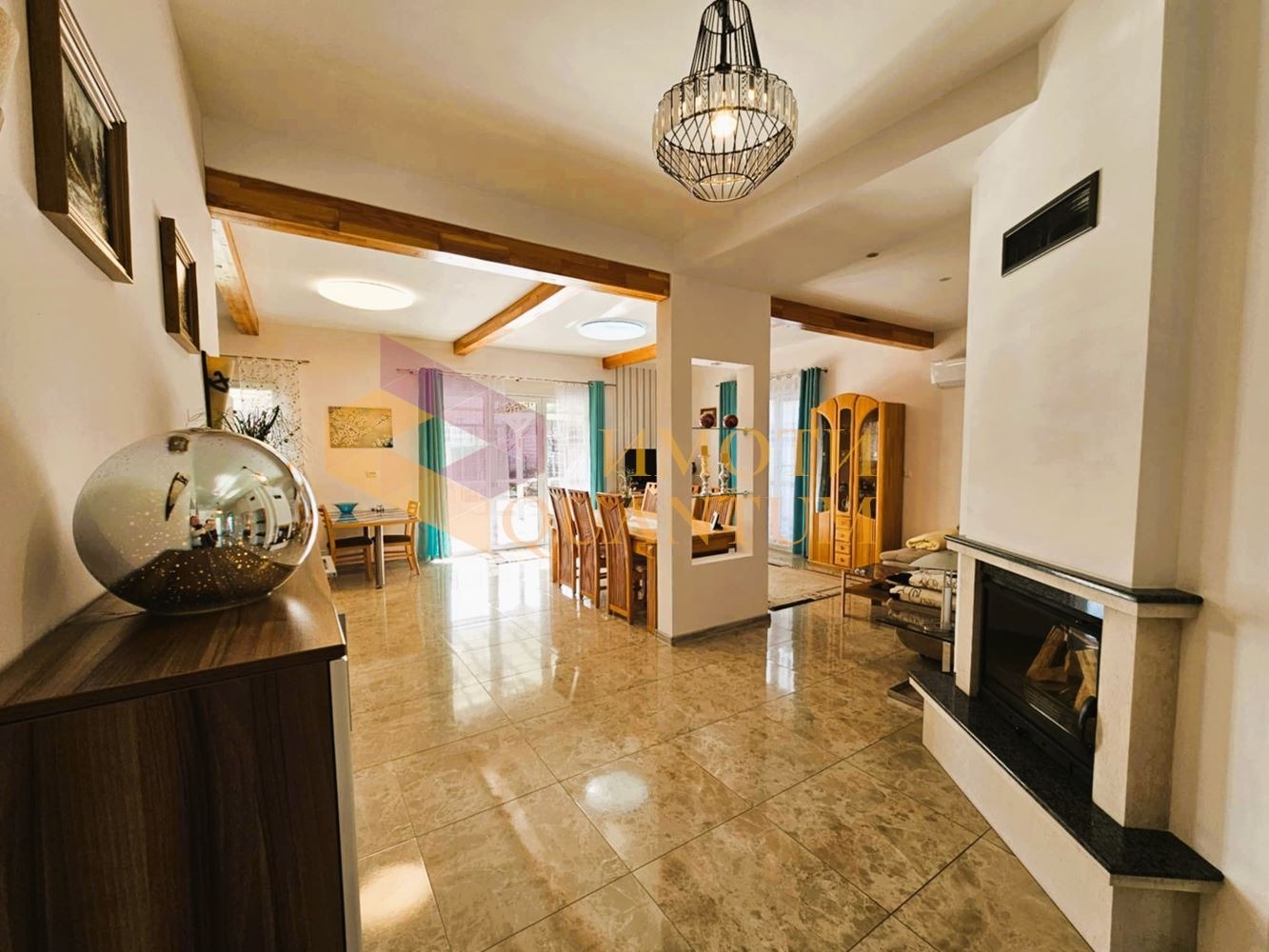 Отоплениено в къщата е решено с инверторни климатици и камина на дърва за уют и романтика в зимните вечери.