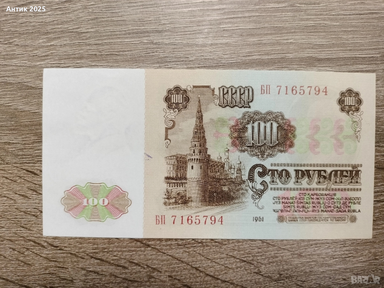 Продавам оригинална банкнота 100 рубли СССР, образец 1961 г. Състояние UNC – не е била в обращение, без сгъвки, петна или следи от употреба. Цветовете са ярки, хартията е запазена и чиста. Редък колекционерски екземпляр, особено в такова перфектно състояние. Подходяща за колекционери, антикварни магазини или като подарък.