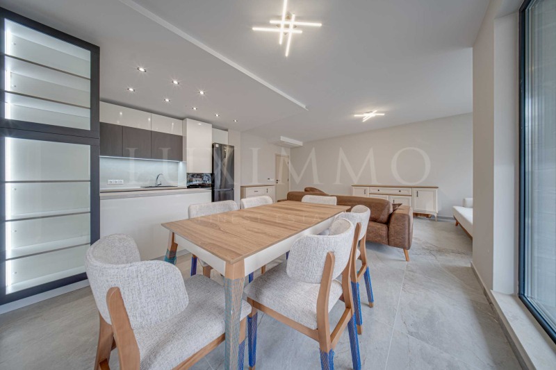 Подовите настилки са от висококачествен гранитогрес и естествен паркет, стените боядисани с латекс в неутрални цветове, а обзавеждането и оборудването от висок клас по индивидуален проект.