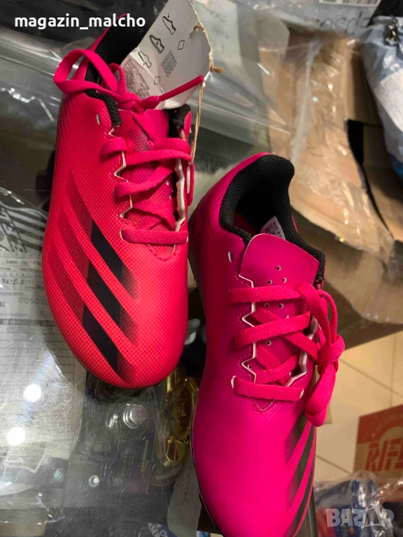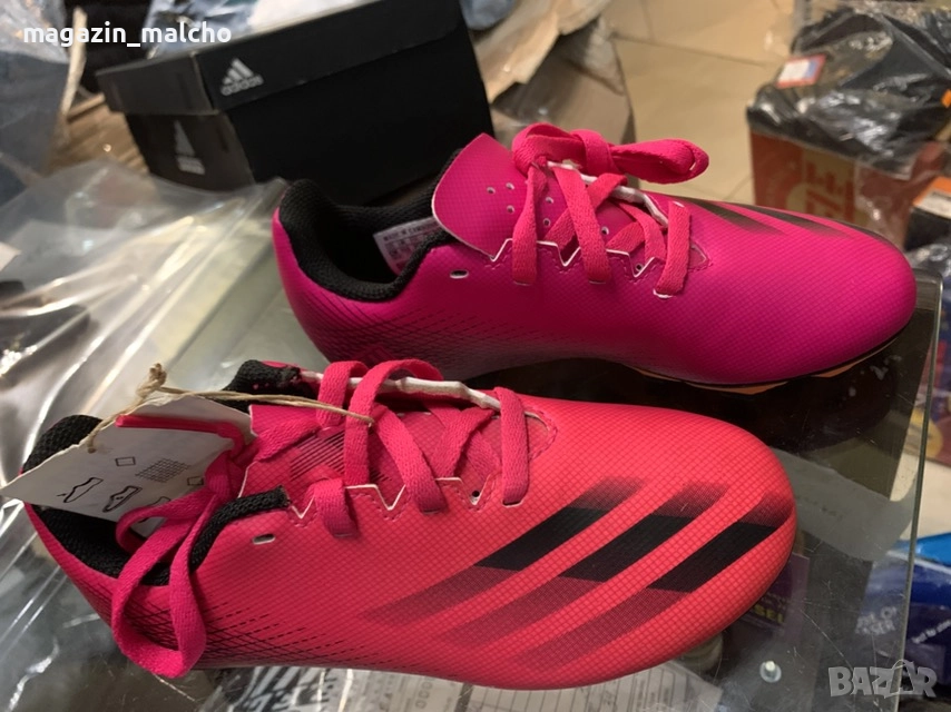 Насладете се на футбола с калеври Adidas. Използвайте модел X Ghosted.4 FxG на стадиона или терени с естествена трева. Тези футболни обувки предлагат изключително сцепление на естествени терени, благодарение на формованите бутони, разположени стратегически, за да предложат бързо движение по терените. Омекотената стелка предлага удобство, а закрепването с връзки стабилност и комфорт.