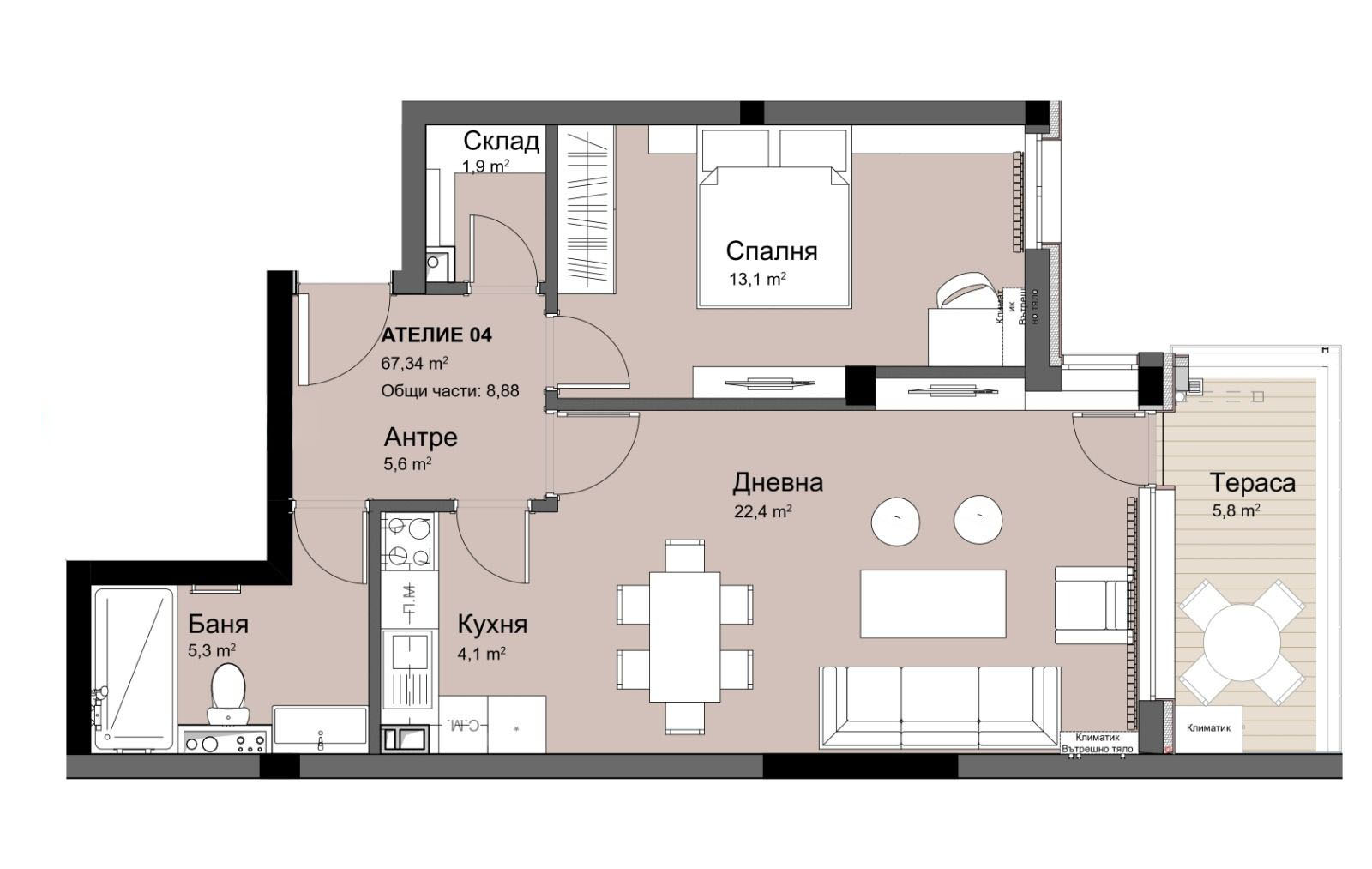 Титан Пропъртис с радост предлага на Вашето внимание двустаен апартамент за продажба в ж.к. Красно село. С площ 77 кв.м, имотът е на 3 етаж в нова шестетажна сграда на Акт 14, която ще бъде завършена през 2027 г. Имотът е с изложение изток/север и със следното разпределение: входно антре, дневна, спалня, баня с тоалетна, складово помещение и тераса. Жилището се предлага на шпакловка и замазка, което дава свобода за индивидуално обзавеждане. Отоплението е на ТЕЦ и също така има възможност за паркомясто или гараж.