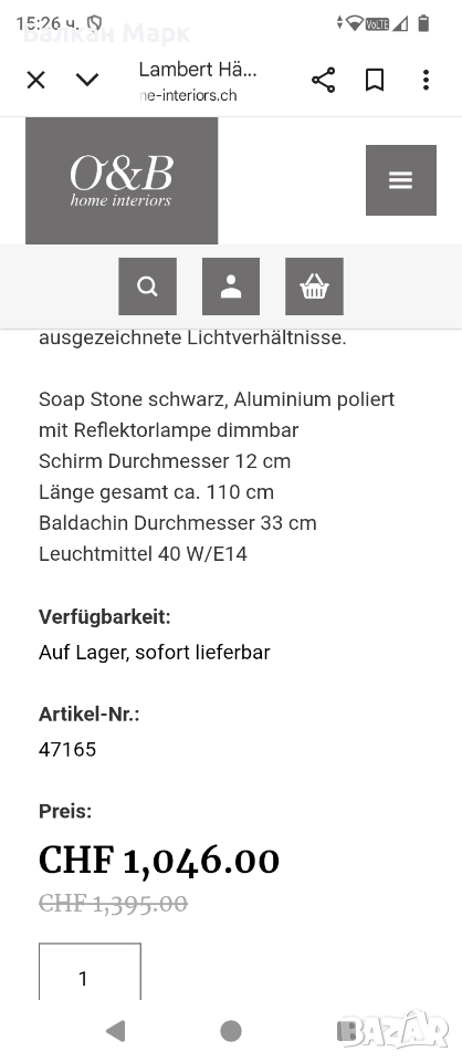 Предлагам дизайнерския полилей Lambert Fadi с кръгъл балдахин, изработен от черен сапунен камък и полиран алуминий. Луксозен модел, който в оригинално състояние (показано на 2-ра и 3-та снимка) е около 1200 Евро.