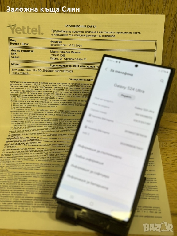 Продавам телефон Samsung Galaxy S24 Ultra 256GB, в комплекта има зарядно,адаптер,калъф и гаранция към Yettel 36 месеца, закупен е на 16.02.24г., не е заключен