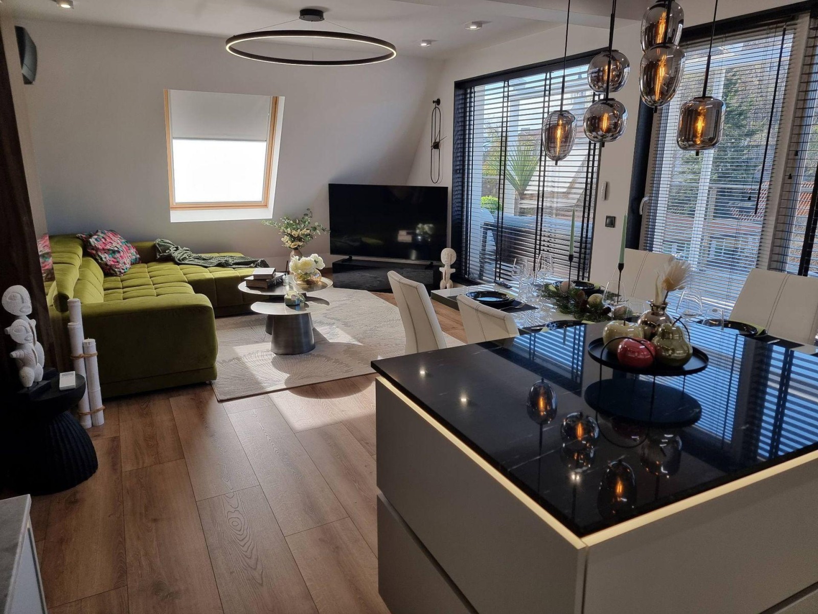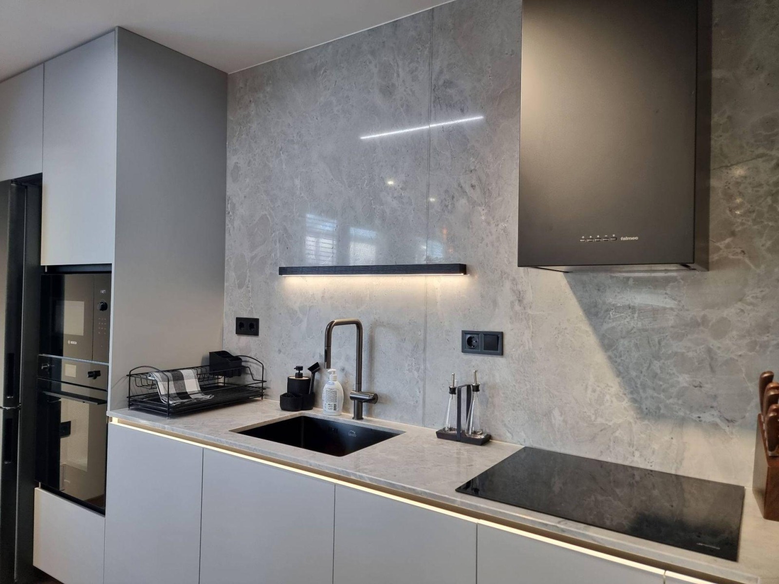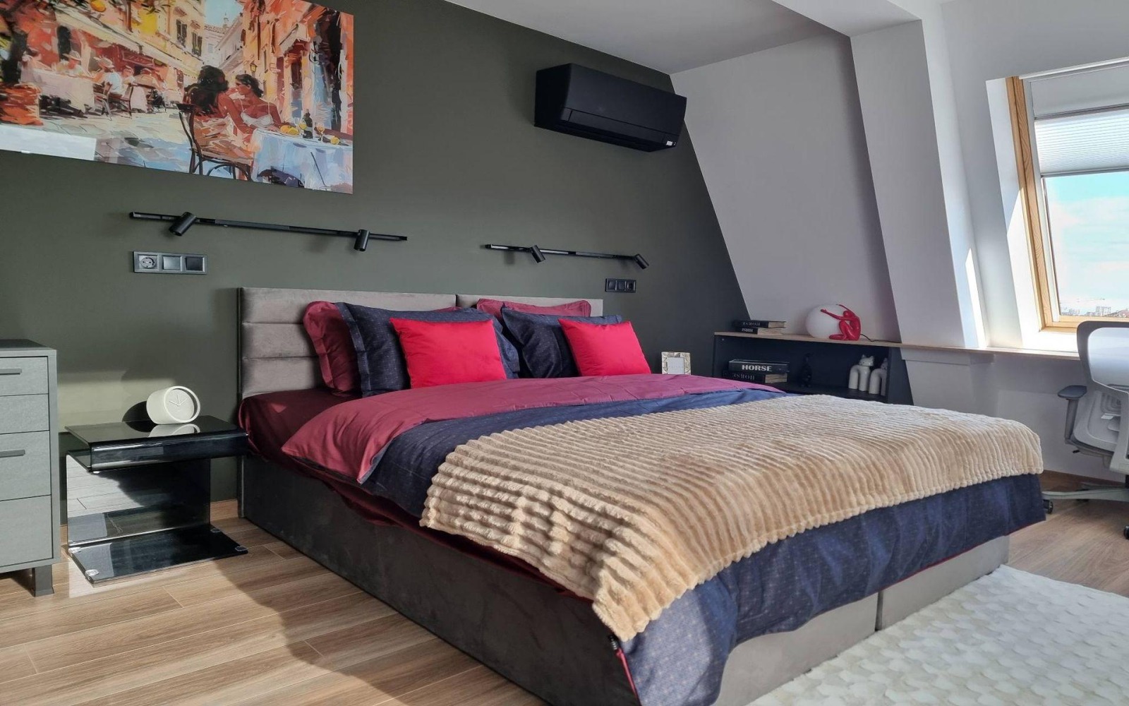 Този изключителен 130-метров пентхаус предлага светли стаи с панорамна гледка към града. Две тераси, стилен кухненски бокс, модерни помещения и асансьор, който спира в апартамента за допълнително удобство.. Обзаведен с висококачествени материали и климатик за идеална атмосфера.