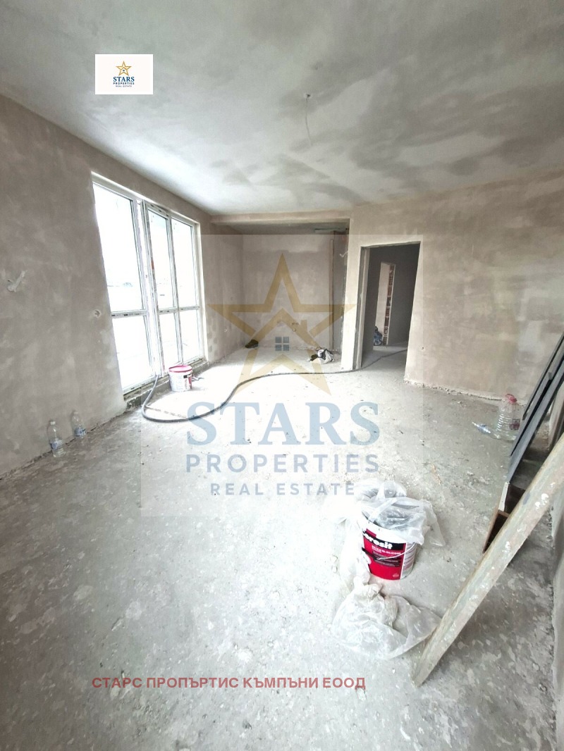 Просторна и светла всекидневна, две спални ,килер, две санитарни помещения, геобразен коридор, и две тераси. Възможност за завършване до ключ.