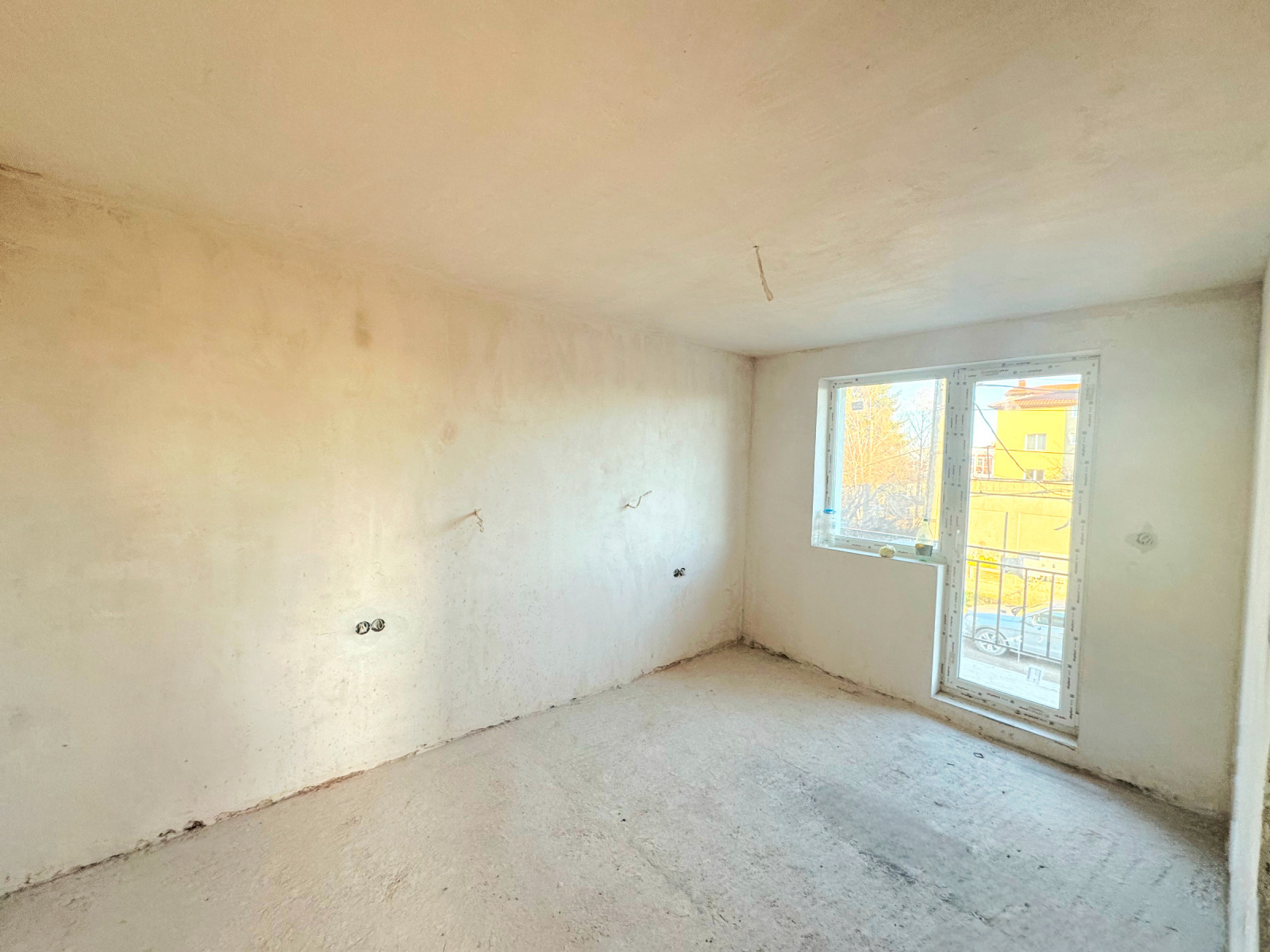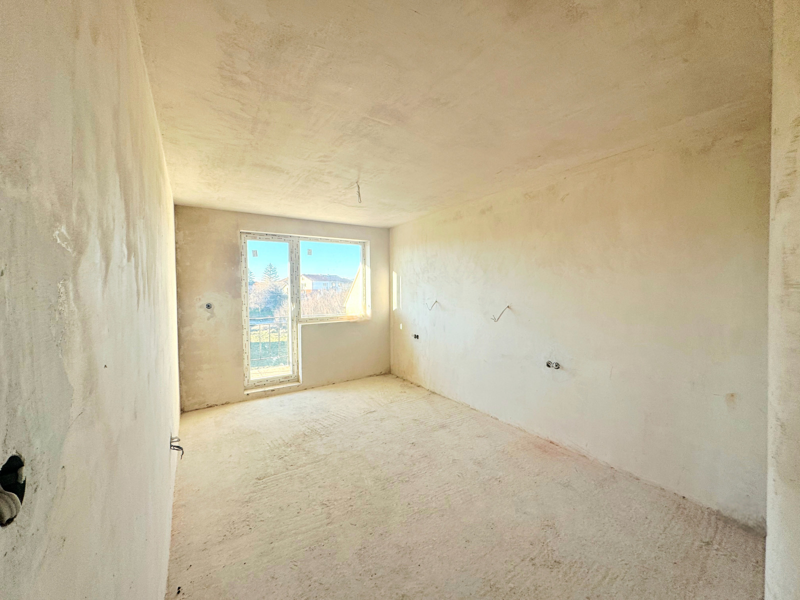 Първият етаж предлага входно антре, просторна дневна с кухня и трапезария, излаз към веранда и двора, голяма баня с тоалетна и килер. На втория етаж са разположени три спални, две бани с тоалетни, дрешник и две тераси, което осигурява комфортно и функционално пространство за цялото семейство.