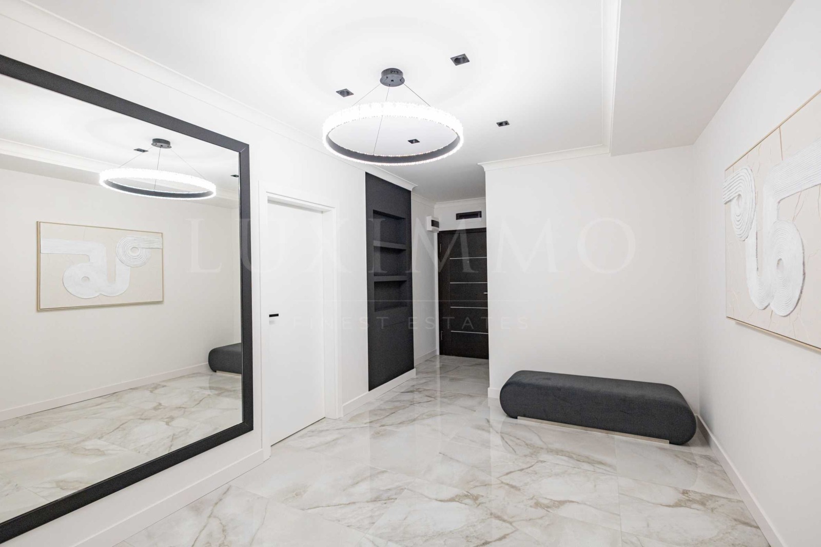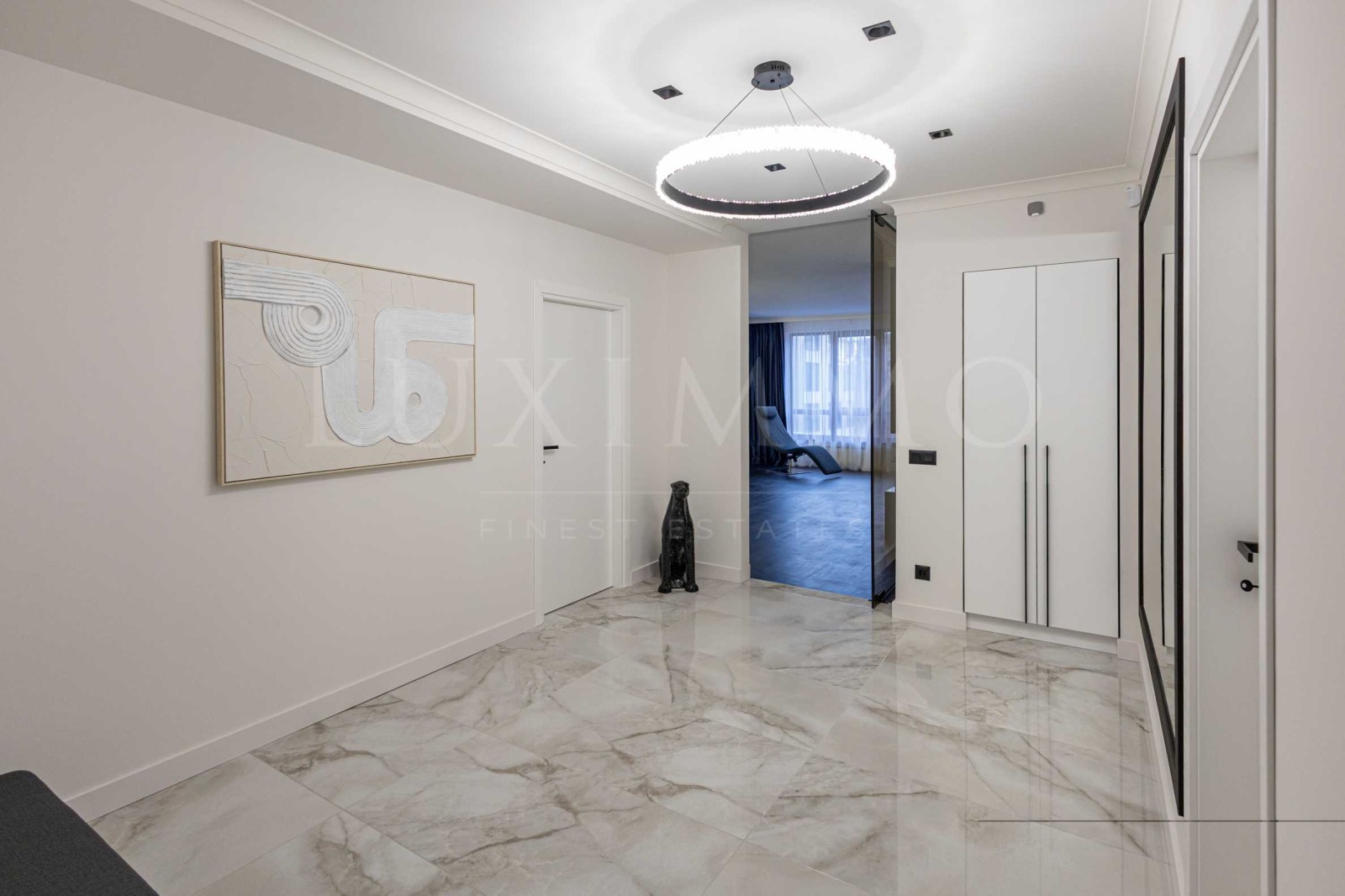 Жилището впечатлява с обща площ от 220 кв.м и е разположено на третия етаж в шестетажна сграда. Вътрешното разпределение включва просторна всекидневна с кухня и трапезария, обогатена от елегантна камина, която допринася за усещането за уют и комфорт. Има две спални, всяка със самостоятелна баня и дрешник. Имотът е след цялостен основен ремонт и се отличава с модерен, изчистен дизайн, който позволява на бъдещите собственици да добавят своя собствена визия в интериора. Допълнително жилището предлага две слънчеви тераси и отделна тоалетна за гости. Осигурени са централно отопление и климатизация.