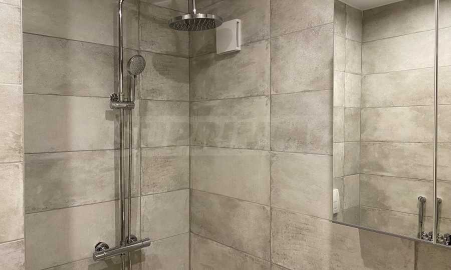 Апартаментът е след основен ремонт и в отлично общо състояние. Отоплението е решено с климатик и локално парно с котле на ток. Кухнята е оборудвана с хладилник, готварска фурна и вградени котлони, миялна машина.