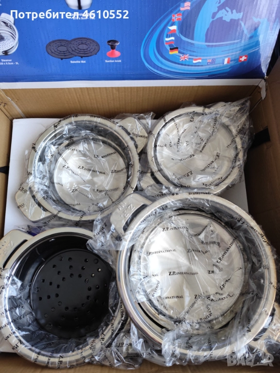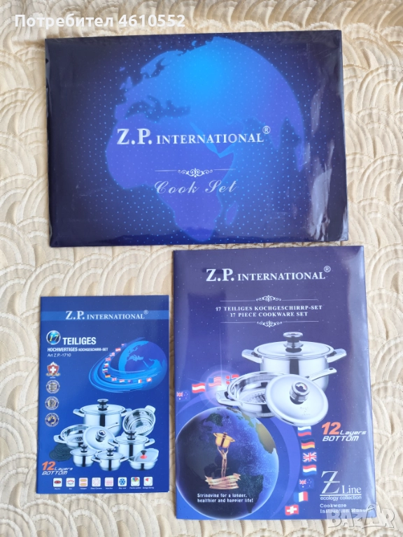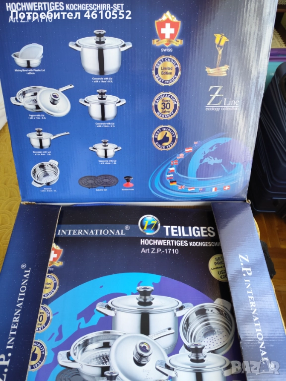 Продавам 2 броя нов луксозен комплект съдове за здравословно готвене Z.T. International, Z Line, Z.P-1710 от 17 части. Изработени са от висок клас стомана: Bergamoon Z.P.T.R. по патент на