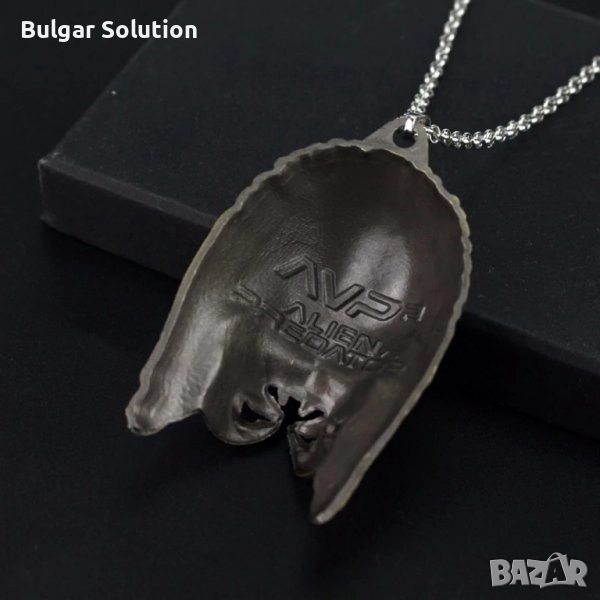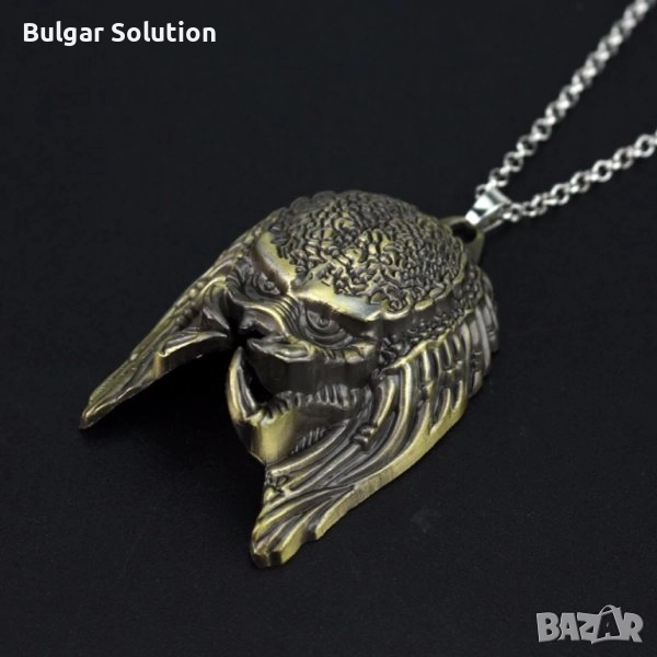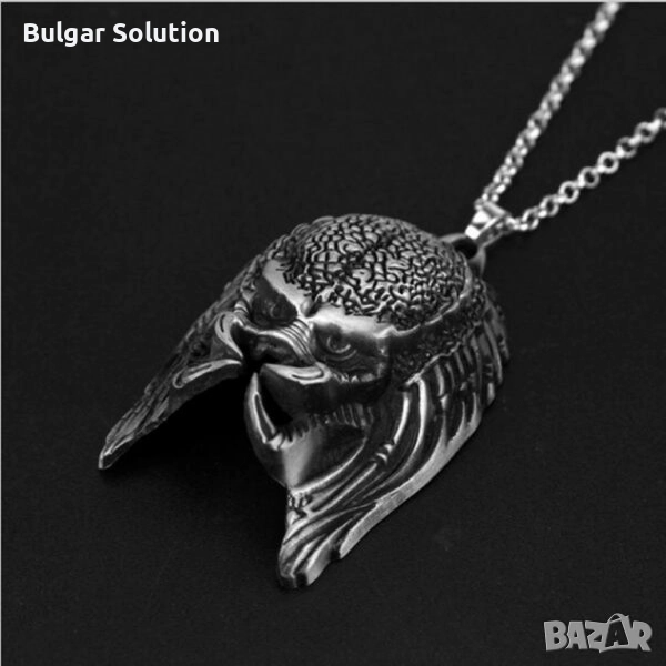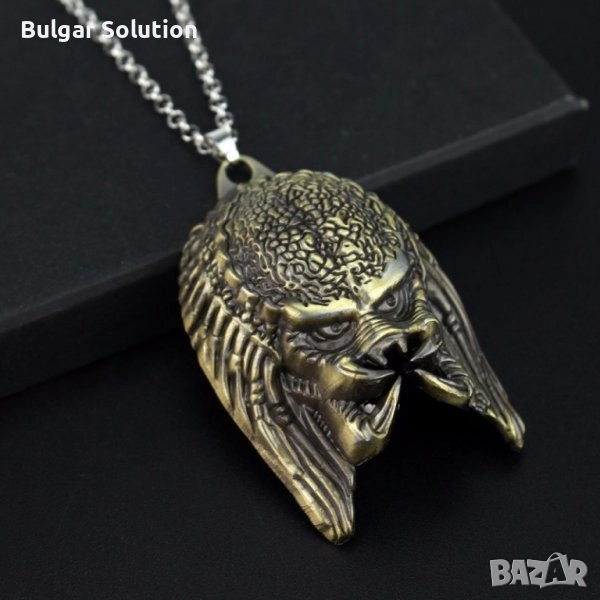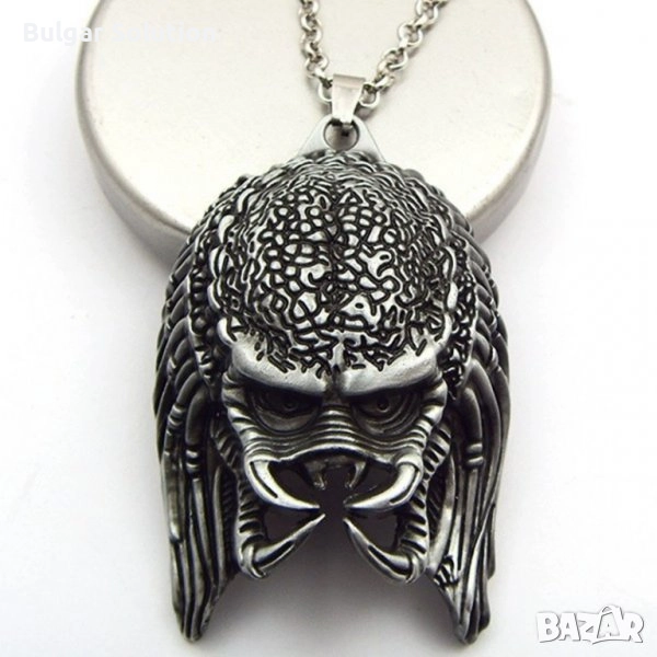 Страхотен медальон на маската на главата на хищника(the predator) използвана в поредицата филми Predator, The Predator, Alien vs Predator, Пришълеца и т.н. По размер е особено масивна и голяма, което дава стил на медальона. Изработката е супер качествена и детайлна! Страхотно бижу за Вас или за подарък. Перфектно колие за всеки обичащ sci-fi филмите, Фантастиката, космическата фантастика, извънземните, филмите на ужасите, малките зелени човечета или просто уникалните персонажи изобразени в поредицата. Отлично качество в оригинална опаковка - колекционерско!