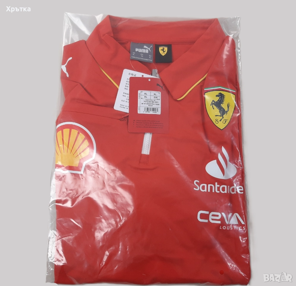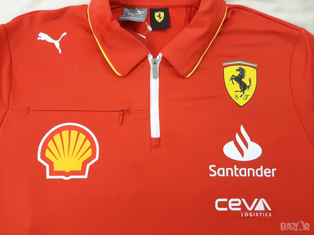 Официалната тениската с яка, носена от екипа на Scuderia Ferrari по време на състезания.