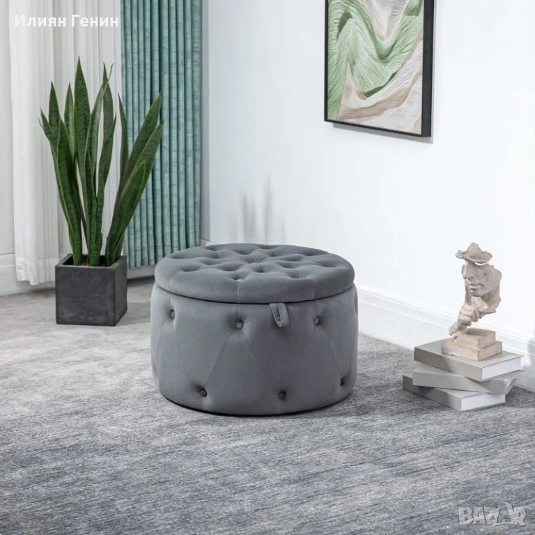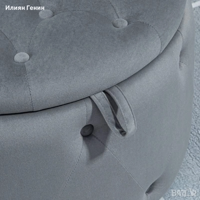 Табуретка HOMCOM, кръгла, с отделение за съхранение, капитониран дизайн с копчета, калъф с кадифен вид, сива, 60 x 60 x 40 см - 120.00лв.