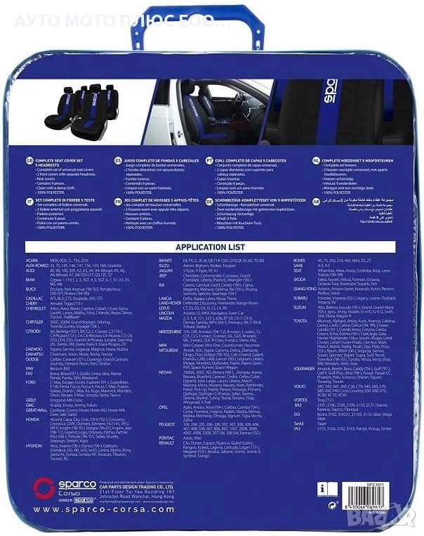 Цвят: Черно и Универсална тапицерия Sparco от 11 части, която пасва на повечето модели автомобили.