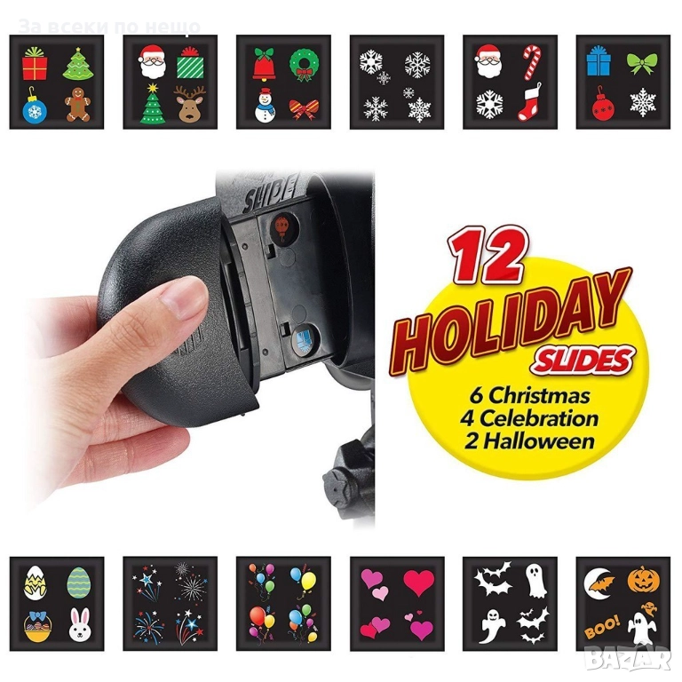 Прожектор Holiday slide / Лесна употреба; Влагоустойчив корпус; Различни фигурки за проекция, снимка 1 - Прожектори - 52666547 Прожектор Holiday slide / Лесна употреба; Влагоустойчив корпус; Различни фигурки за проекция, снимка 2 - Прожектори - 52666547 Прожектор Holiday slide / Лесна употреба; Влагоустойчив корпус; Различни фигурки за проекция, снимка 3 - Прожектори - 52666547 Прожектор Holiday slide / Лесна употреба; Влагоустойчив корпус; Различни фигурки за проекция, снимка 4 - Прожектори - 52666547 Прожектор Holiday slide / Лесна употреба; Влагоустойчив корпус; Различни фигурки за проекция, снимка 5 - Прожектори - 52666547 Прожектор Holiday slide / Лесна употреба; Влагоустойчив корпус; Различни фигурки за проекция, снимка 6 - Прожектори - 52666547 Прожектор Holiday slide / Лесна употреба; Влагоустойчив корпус; Различни фигурки за проекция, снимка 7 - Прожектори - 52666547 1/7