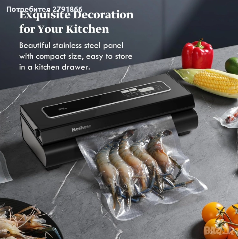 - 【Запазете храната свежа и спестете пари】Вакуумната машина Mesliese е проектирана да осигурява мощно засмукване с максимум 90kPa, което прави вакуумирането на всякакви храни много по-лесно и бързо. По-полезен начин за спестяване на пари и време. Поддържайте храната или плодовете си свежи 10 пъти по-дълго от обикновените методи за съхранение във фризер.