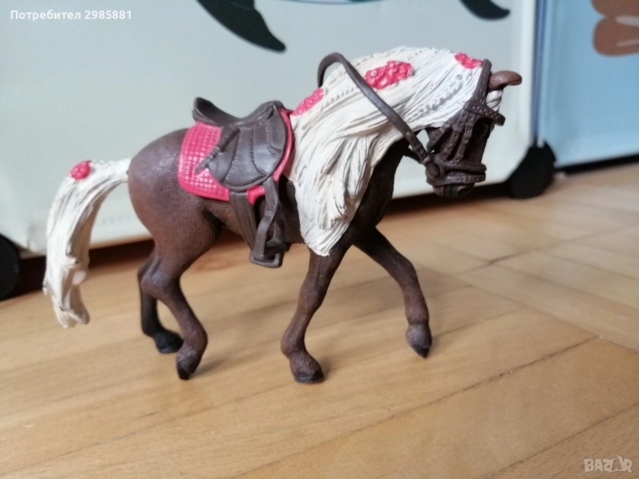 В отлично състояние е! На колекционерската марка Schleich, ръчно рисувани фигури. Разполагам с още комплекти на марката Schleich, при интерес можете да ми пишете допълнително. Описание: От какво имат нужда конете, за да се чувстват добре на арената за езда? Посетете конюшните, нахранете ги и срешете гривите им. При конете никога не е скучно! Присъединете се към Конния клуб, където ездачите се грижат за конете и се подготвят за конни състезания. Фигурките Schleich са моделирани с внимание към детайла и ръчно нарисувани, което прави всяка фигурка уникална. Образователните играчки на Schleich предоставят възможност за учене чрез игра и стимулират креативност и инициативност у децата. Детските усмивки нямат цена, подарете новата любима играчка на вашия малчуган. Отведете го в света на приключенията с коне.